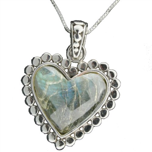 !±8± Sterling Silver Faceted Labradorite Heart Pendant on 18 Inch Box Chain